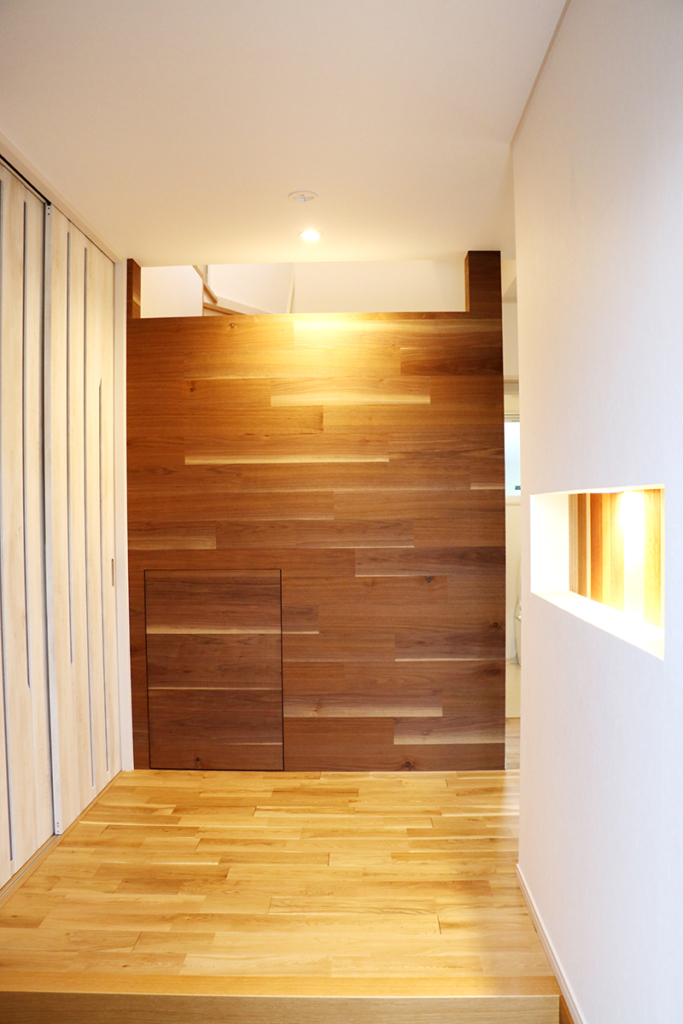 3世代の家族をあたたかく迎え入れるシューズクローク付きの玄関。