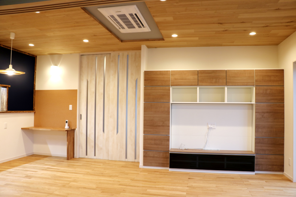 3世代が集うリビングルームには対面式のキッチンを設けました。